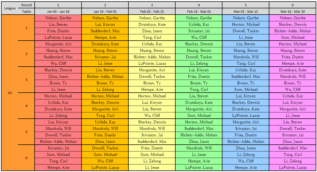 Winter League Assignments