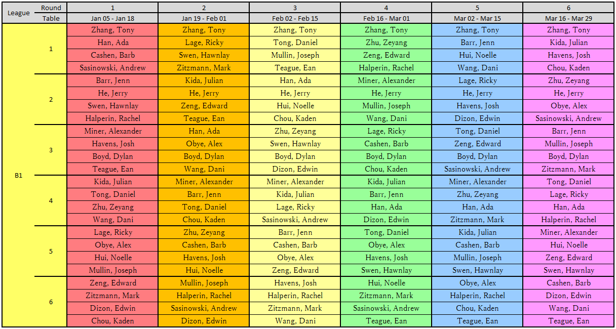Winter League Assignments